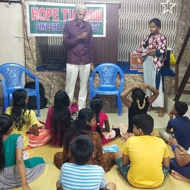 We conduct our tuition classes on church premises, made possible through partnerships with local churches. These churches generously collaborate with us by providing their facilities and supporting our mission to educate underprivileged children.